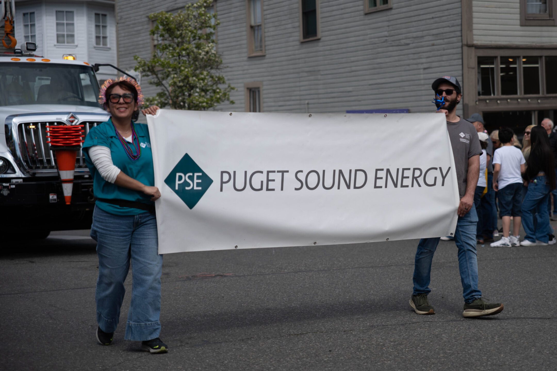Bloom Status sponsor, Puget Sound Energy powering their way through the 2025 annual Tulip Festival parade.