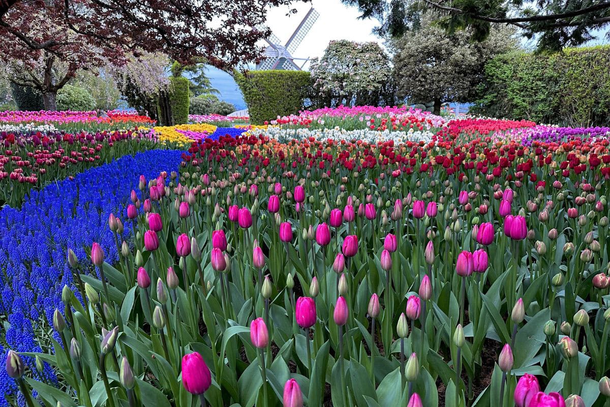 - Iconic garden landscapes. Wander through a 5-acre display garden that is hand planted and re-designed with more than 1 million bulbs each year. Enjoy manicured beds, winding paths and the famous authentic Dutch windmill.
