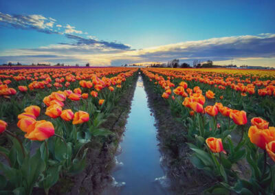 You’ll find countless rows of tulips and daffodils stretching toward the horizon on this rich agricultural landmark.